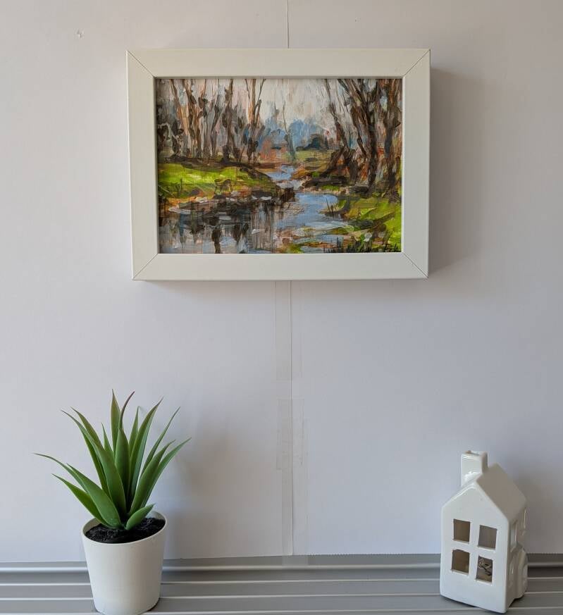 Dit sfeervolle beeklandschap is een aanwinst voor uw interieur.