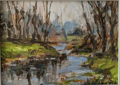 Dit sfeervolle beeklandschap is een aanwinst voor uw interieur.